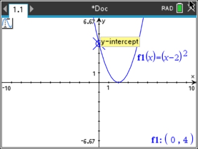 Values such as y-intercept, x-intercept, zero, maximum and minimum of the graph will automatically appear when encountered by the "spider".