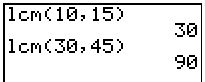 LCM is found under MATH → NUM, arrow down to #8: lcm(