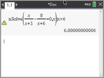 nSolve (x / (x + 3) - 8 / (x + 6) = 0, x) | x > 6 |